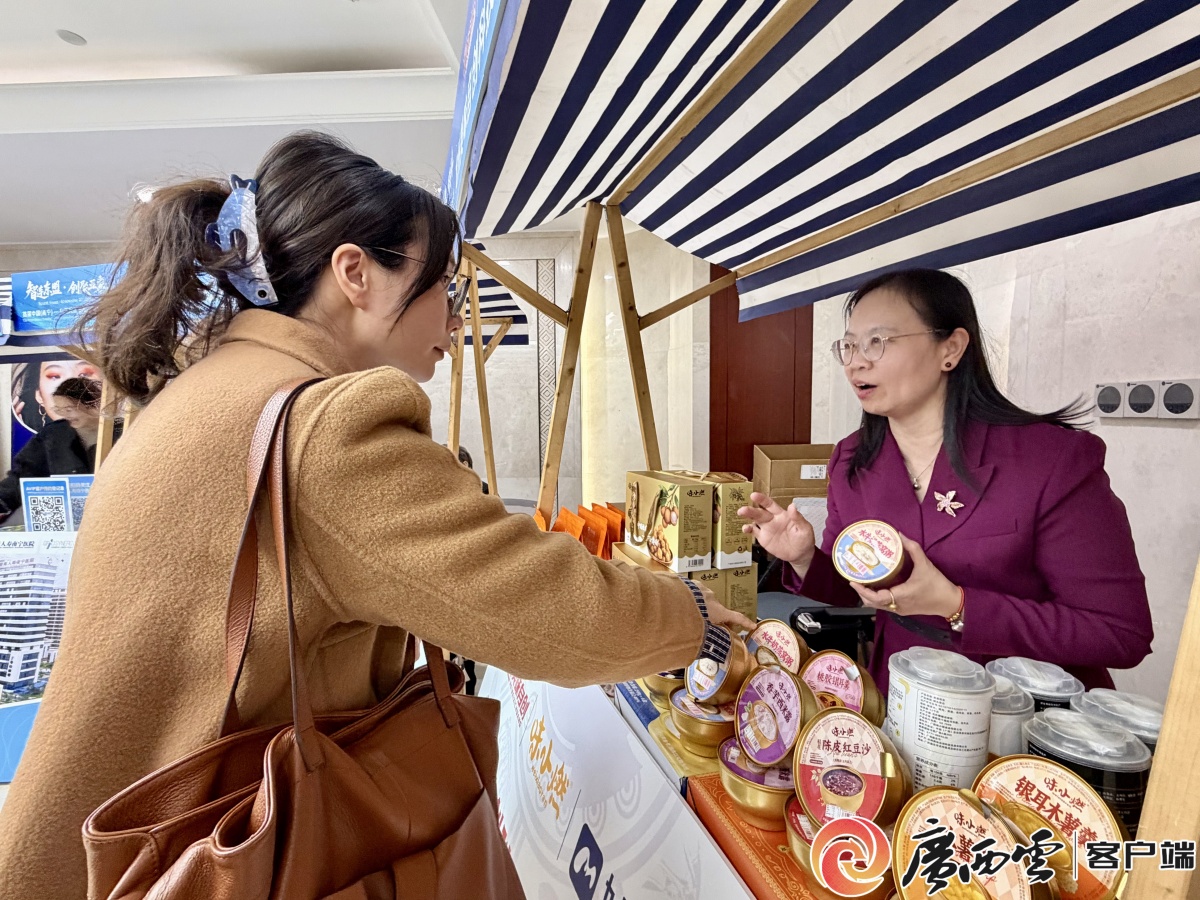 1月15日,“智连东盟·创聚五象”首届中国(南宁)—东盟跨境贸易供需对接大会在南宁五象新区开幕,图为企业现场推介自己的产品。记者 陈思羽 通讯员 杨家威 摄